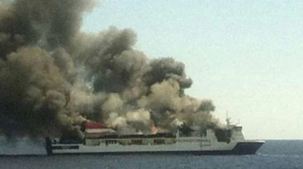 El ferry incendiado en alta mar. EFE