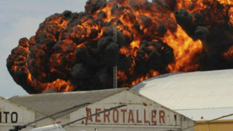 Explosión producida al estrellarse la avioneta en Cuatro Vientos. EFE