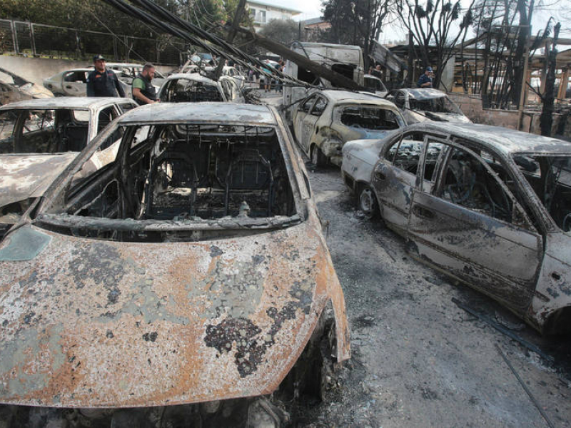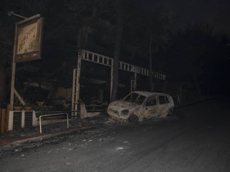 July 24, 2018 - Athens, Greece - Tens of cars and houses have been detroyed from the wildfire that started on July 24 at Mati and N. Boutzas suburbs, northeastern Attica reached the shoreline while forty nine fatalities have been confirmed with the number expected to rise. (Credit Image: © Nikolas Georgiou via ZUMA Wire)
