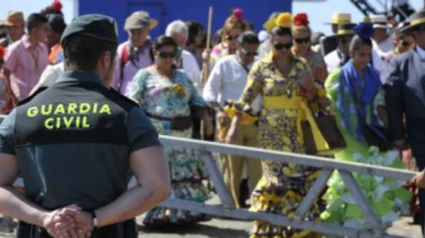 Un agente vigila la buena marcha de los romeros camino del Rocio. Foto @guardiacivil