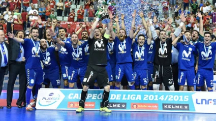 Inter Movistar ha revalidado el título de campeón de la Liga de Primera División de fútbol sala tras derrotar este lunes por 4-5 a ElPozo Murcia en el cuarto partido de la final, disputada al mejor de cinco encuentros. El equipo murciano llegó a ir dominando el marcador por 4-1 con goles de Grello, Lima, Álex y Bebe. Por el Inter Cardinal anotó el momentáneo 2-1. El Inter Movistar consumó la remontada con un triplete de Ricardinho y un tanto de Pola. Se trata del décimo título de liga del equipo de Alcalá de Henares y lo añade a los logrados en las temporadas 1989/90, 1990/91, 1995/96, 2001/02, 2002/03, 2003/04, 2004/05, 2007/08 y 2013/14.