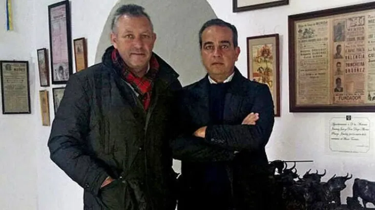 Vicente Elices y Joaquín Domínguez tras sellar el acuerdo de gestión de la plaza de Mérida. PRENSA MAR TOROS