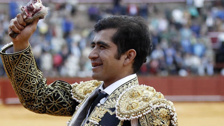 Joselito Adame con la oreja cortada este miércoles en la Real Maestranza. ARJONA