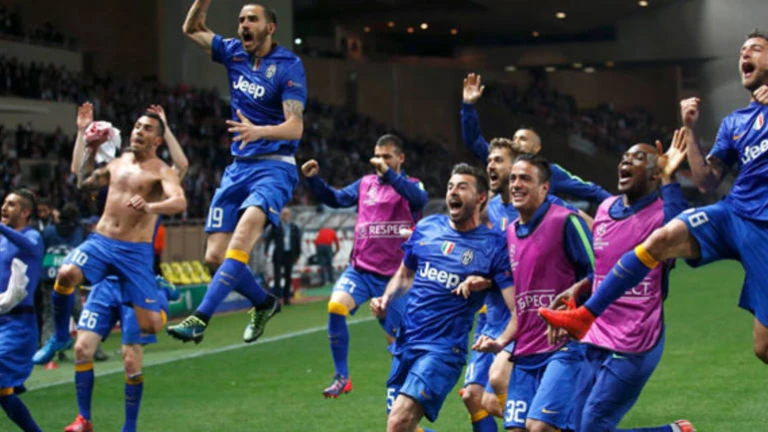 La Juventus celebra en Mónaco su pase a semifinales. REUTERS