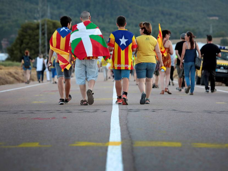 GRAF3639. SANT JOAN DE VILATORRADA (BARCELONA), 04/07/2018.- Aspecto de la manifestación convocada por la ANC y Omnium en los accesos al centro penitenciario "Els Lledoners", donde el presidente de la Generalitat, Quim Torra ha visitado a los exconsellers Oriol Junqueras y Raül Romeva, al exdiputado de JxCat Jordi Sànchez y al expresidente de Òmnium Jordi Cuixart, apenas horas después de que hayan ingresado en esta prisión catalana. EFE/Susanna Sáez