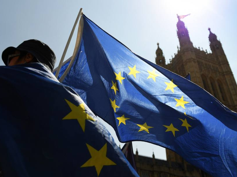 ARA1. LONDRES (REINO UNIDO), 03/07/2018.- Un activista en contra del "brexit" se manifiesta en los alrededores del Parlamento en Londres (Reino Unido) hoy, 3 de julio de 2018. El ministro de Economía británico, Philip Hammond, aseguró hoy que el Gobierno escuchará las preocupaciones del sector empresarial de cara al "brexit". EFE/ Andy Rain