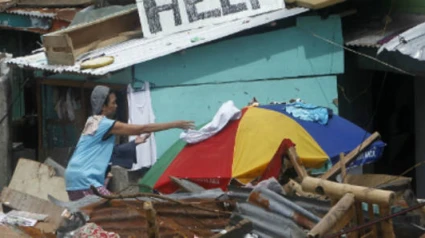 Una mujer se pasea por los restos de su casa en Taclobán (Reuters)
