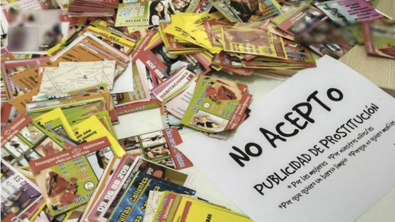 Desde hace meses, la publicidad de prostitución "inunda las calles y plazas de numerosos barrios" en forma de llamativas tarjetas de visita que se colocan en los parabrisas y ventanas de los vehículos aparcados, y que se encuentran al alcance de viandantes y vecinos, tenga la edad que tengan. La mayoría de las veces, los cartones incluyen "un teléfono de contacto y fotografías explícitas en las que la mujer aparece como mera mercancía".