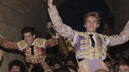 José Garrido y Borja Jiménez en su salida a hombros en Sevilla la pasada temporada. ARCHIVO