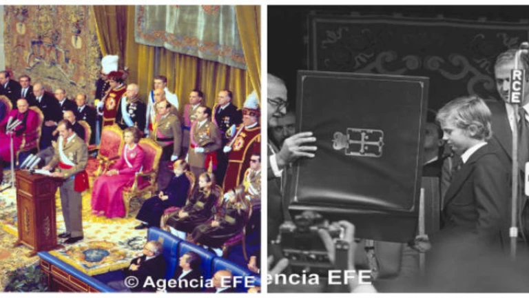 Don Juan Carlos fue proclamado Rey de España el 22 de noviembre de 1974, y su hijo Felipe fue proclamado Príncipe de Asturias y Heredero de la Corona en Covadonga (Asturias) el 1 de noviembre de 1977.