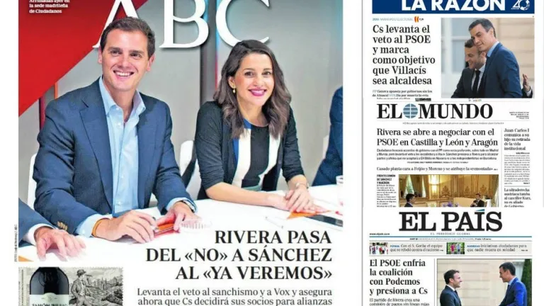 El nuevo cambio de opinión de Rivera que puede posibilitar pactos con el PSOE, portada en la prensa