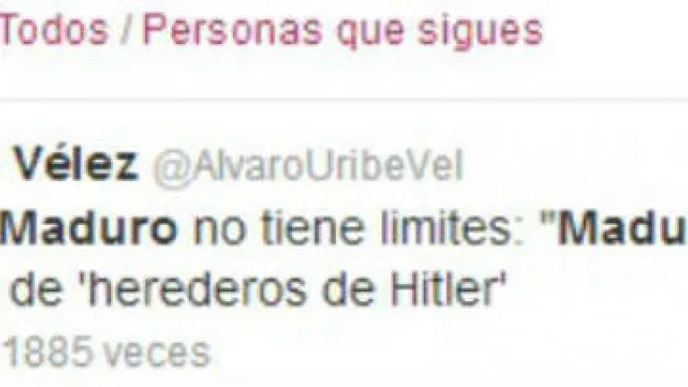 El presidente encargado de Venezuela, Nicolás Maduro, protagoniza su primera polémica en la red social Twitter, donde respondió a varias críticas que lanzó por la misma vía el exgobernante colombiano Álvaro Uribe. El que fuera jefe de Estado colombiano encendió la red social desde este sábado, cuando criticó a Maduro por tildar a la oposición como "herederos de (Adolf) Hitler" durante un acto en Barinas, el estado natal del fallecido presidente Hugo Chávez. Desde entonces han continuado los mensajes e incluso funcionarios venezolanos han terciado en este intercambio. "El cinismo de Maduro no tiene limites: "Maduro sube el tono y tilda a la oposición de 'herederos de Hitler'", escribió ayer el exmandatario en su cuenta @AlvaroUribeVel, y horas después el gobernante encargado de Venezuela le respondió: "Herederos de Usted? Mejor?". Luego intervino el gobernador del estado de Aragua y dirigente del Partido Socialista Unido de Venezuela (PSUV), Tarek El Aissami, quien aseguró que batallan para "impedir que el odio y la violencia que ustedes predican retorne a la PatriaGrande" y añadió como etiqueta "#URIBEigualCAPriles" al aludir a Henrique Capriles. Maduro aludió nuevamente a Uribe al escribir: "Nicolás.Nicolás.Nicolás,la Obsesión Fatal...Ja ja ja ja", ante los distintos mensajes publicados hoy por el expresidente colombiano. Uribe ha aprovechado los 140 caracteres del Twitter para pronunciarse sobre el país caribeño y las políticas oficiales. "Venezuela una de las mayores inflaciones del mundo", aseguró en su cuenta, y continuó "una de las peores competitividades del mundo"; "Venezuela proponía producir más de 6 mill de barriles de petróleo, produce no más de 2.5 mill"; "Venezuela sometida al Castrismo. Arruinada y sostiene al comunismo cubano". El pasado 17 de marzo, Maduro se estrenó en Twitter con la cuenta @NicolasMaduro, tratando de seguir la estela de Chávez, que logró ser el segundo mandatario más seguido del mundo en la red social, por detrás del estadounidense Barack Obama. Chávez, que falleció el 5 de marzo a consecuencia de un cáncer, llegó a acumular 4.221.646 de seguidores. Uribe (2002-2010) mantuvo durante sus dos mandatos unas relaciones muy tensas con Chávez, que rompió los lazos diplomáticos con Colombia en 2009 en represalia porque el Gobierno colombiano lo acusó en la Organización de Estados Americanos (OEA) de connivencia con la guerrilla. Las relaciones entraron en franco restablecimiento a partir de agosto de 2010, con la investidura del actual presidente colombiano, Juan Manuel Santos, antiguo correligionario de Uribe, de quien fue ministro de Defensa de 2006 a 2009.