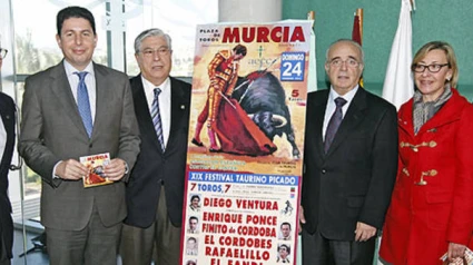 El festejo se celebrará el domingo 24 de febrero a las cinco de la tarde y el cartel estará integrado por el rejoneador Diego Ventura, los matadores de toros Enrique Ponce, Finito de Córdoba, Manuel Díaz ‘El Cordobés’, Rafaelillo, El Fandi, y el novillero Antonio Puerta. Se lidiará un toro para rejones de Fermín Bohórquez y seis toros de Hnos. García Jiménez para la lidia a pie. La presentación se desarrolló en la sede de la Asociación Española Contra el Cáncer de Murcia y contó con la presencia del presidente de la AECC Región de Murcia, Agustín Navarrete Montoya, y el empresario de la plaza de Murcia y alma máter de este festejo, Ángel Bernal. Gobierno regional y Ayuntamiento estuvieron representados en el acto por el consejero de Obras Públicas, Antonio Sevilla; el Director General de Salud de la Región de Murcia, Francisco J. García Ruiz; la segunda Teniente de Alcalde y delegada de Bienestar Social del Ayuntamiento de Murcia, Mª Carmen Pelegrín García, y el concejal de Cultura del Ayuntamiento murciano, Rafael Gómez Carrasco. El presidente de la AECC Región de Murcia, Agustín Navarrete Montoya, ha dejado claro en la rueda de prensa que Ángel Bernal es “el alma del festival”, y que esta entidad sigue realizando su tarea de “informar u concienciar a la sociedad de Murcia de lo que es el cáncer”, además de llevar a cabo una importante tarea de investigación. Por su parte, el empresario de la plaza de toros de Murcia, Ángel Bernal, destacó que este festival, que lleva organizando durante 19 años, es ya un clásico, “considerado en muchos lugares de España como el festival por excelencia”, dijo. Mostró su satisfacción por el cartel conseguido y realizó un llamamiento para “contar con el apoyo de toda la sociedad murciana en un año tan difícil como éste”. La empresa Toros Sureste, organizadora del festival, informó que los abonados a la plaza de Murcia tienen sus entradas reservadas del 23 al 27 de enero y que el 1 de febrero se pondrán a la venta todas las que no se retiren en las juntas locales de la AECC y en el Club Taurino de Murcia. A partir del 16 de febrero se podrán adquirir en las taquillas de la plaza de toros en horario de 10 a 2 y de 5 a 8.