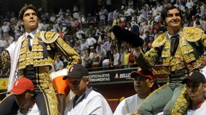 Castella y Morante en su salida a hombros en Medellín (Colombia). EFE