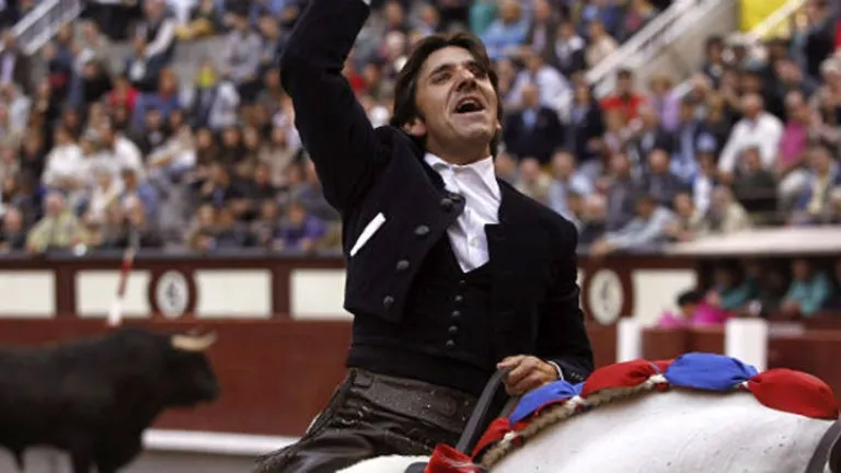 Madrid, domingo 9 de junio de 2013. 6ª del Arte y Cultura. Más de tres cuartos de plaza. Toros de María Guiomar Cortés de Moura, reglamentariamente despuntados, grandones y con kilos, bajitos de raza pero "dejándose" en general. Los que más desentonaron, tercero y quinto. Fermín Bohórquez, silencio tras dos avisos y silencio. Diego Ventura, oreja y vuelta. Joao Moura hijo, saludos y palmas.La tarde tenía claro protagonista desde el principio: Diego Ventura. Lo prueba la cantidad de público que acudió a Las Ventas a verle, a él, al jinete que está mandando y revolucionando el cotarro del toreo ecuestre, y que por sí solo consiguió la mejor entrada de todo el serial, sin contar la Beneficencia.La gente le quiere y le espera como a pocos, sabedores de que Ventura siempre corresponde con entrega y espectáculo, gracias a su innegable dominio de todas las suertes y, sobre todo, por su carisma y amor propio de auténtico "figurón" del toreo a caballo, amén de su cuadra, ¡cumbre!, sin duda, una de las mejores que hay actualmente.Esta tarde cosechó, como es habitual en él, una soberbia actuación, pero, en esta ocasión, no pudo sumar otra Puerta Grande más a las once que posee en su palmarés en la Monumental madrileña por malograr en la suerte suprema su segunda faena al quinto toro.Los gestos y aspavientos al término de su labor denotaban la rabia de un hombre al que no le gusta perder ni a las canicas, y que había puesto en esta tarde todas las ilusiones para seguir haciendo historia, algo que prueba la campaña de publicidad que ha llevado a cabo durante toda esta semana en la que su imagen ha servido de reclamo en distintas zonas de tránsito de la capital.Pero esta vez se quedó Ventura a un suspiro de la gloria, mas hay que destacar que la oreja de ley que paseó de su primer toro fue premio a una faena redonda, que entusiasmó de forma apabullante a los tendidos, y que sólo tuvo el lunar de la mala colocación del rejón de muerte.Una labor espectacular que ya empezó a calentar con los galopes de costado a lomos de "Nazarí", llevando cosido al animal a milímetros de la montura. Soberbios también los quiebros en corto y piruetas en la cara con "Pegaso", y un emocionante final sobre "Remate" en un par a dos manos y una rosa "al violín".La plaza era una olla a presión, que se silenció de golpe al echar mano Ventura del rejón de muerte, que, ya está dicho, no cayó en buen lugar, y por eso cortó sólo una oreja, aunque la faena, por completa y rotunda, había sido de dos.El quinto fue toro más mansurrón, buscando constantemente la huida y con poquito celo. El mérito de Ventura, además de vender increíblemente bien su espectáculo, fue el valor y lo mucho que arriesgó con sus equinos, especialmente con "Nazarí", con el que salió trompicado en varias ocasiones al tener que llegarle (al toro) una barbaridad para clavar.Los mordiscos de "Morante", nada elegantes, sin embargo, conecta mucho con los tendidos, que volvieron a ponerse en pie para ovacionar una rueda de cortas sin irse de la cara con "Remate" en el epílogo. Y cuando más cerca tenía la Puerta Grande se lió a "pinchar" Ventura, perdiendo así la salida a hombros. Una pena.Moura, hijo, llevó a cabo dos faenas de notable nivel, gustando sobremanera en los quiebros, batidas de pitón a pitón, y cambios por los adentros con "Perera" en su primero, y con las "farpas" también montando a "Espartaco" en el que cerró plaza. Pero, emulando a su padre, el gran Joao Moura, falló al matar.Bohórquez, por su parte, protagonizó sendas labores tan puras como frías. En ambas hizo alarde de un sentido y un dominio clásico de la doma, aunque sin llegar a calentar en ningún momento, con notables desigualdades como sus dos fallos, uno en cada todo, en el par a dos manos, su gran especialidad, y, sobre todo, su nulo acierto a la hora de matar.