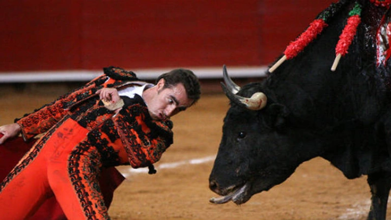 Desplante de El Fandi durante su actuación este domingo en la Monumental de México. EFE