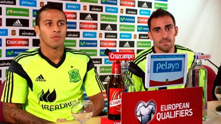 Thiago Alcántara, centrocampista internacional español del Bayern Múnich, mostró su felicidad por volver año y medio después superadas graves lesiones, y destinado a asumir un liderazgo que dijo comienza en Iker Casillas, confesó que ha "contado los días" hasta la nueva llamada de Vicente del Bosque: "Es especial para cualquier futbolista poder volver a la selección española. Ha sido un largo tiempo, he contado los días para volver aquí. Es un doble premio por la recuperación y por el trabajo que estoy haciendo en mi equipo", aseguró en rueda de prensa Thiago que estuvo 371 días sin jugar tras una lesión de rodilla y dos recaídas. Sin querer asumir el liderazgo que muchos ven en Thiago tras la retirada de la selección española de Xavi Hernández, el centrocampista del Bayern de momento quiere aportar "la ambición" del novato: "Lo principal que puedo aportar en este momento es la ambición de los primeros partidos, de las primeras llamadas. Siendo novatos la ambición es gigantesca. Luego la calidad de cada uno la vamos aportando y uniéndolas hacen una muy buena selección. En la selección hay más de veinte líderes que aportan todo lo que tienen. Todos somos líderes, partícipes de cada minuto que jugamos con España. El primer líder es nuestro capitán (Iker Casillas) y luego el resto de internacionales", añadió. El estadio de Las Gaunas quedó marcado en la carrera de Thiago, que debutó con la selección absoluta y ahora volverá a tener minutos tras una larga ausencia de la Roja: "Es una bonita casualidad. Para mi ha sido más especial debutar aquí que esta nueva llamada que también afronto con mucho cariño. Siempre es especial estar aquí, con grandes futbolistas para disfrutar cada día", valoró. No ocultó Thiago la ansiedad de regresar cuando, una vez recuperado de sus lesiones, llegaban las convocatorias de Del Bosque. "Siempre después de una larga lesión cuesta entrar y coger el mismo ritmo que tus compañeros, que es lo que más se pierde al estar parado. Cada llamada de la selección la esperas ansioso, estas pendiente de estar convocado y cuando llega la llamada es una alegría inmensa". Por último, preguntado por si ve a Pep Guardiola como posible sucesor de Del Bosque como seleccionador español, Thiago aseguró que su actual técnico en el Bayern Múnich, "puede ser entrenador en cualquier sitio del mundo".
