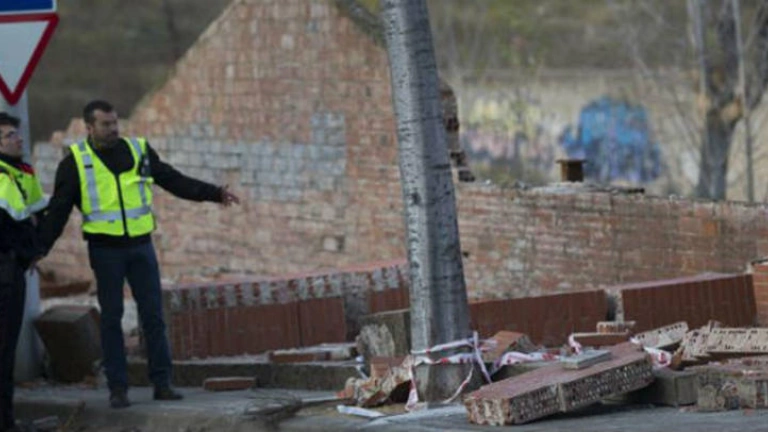 Muro derribado por el viento que ha causado la muerte de dos personas. EFE