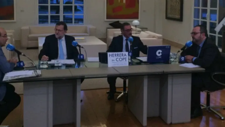Mariano Rajoy con Carlos Herrera, Ángel Expósito y Juan Pablo Colmenarejo en la Moncloa.