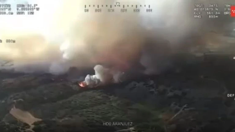 El incendio forestal en Aranjuez (Madrid) se reactiva después de haber sido controlado