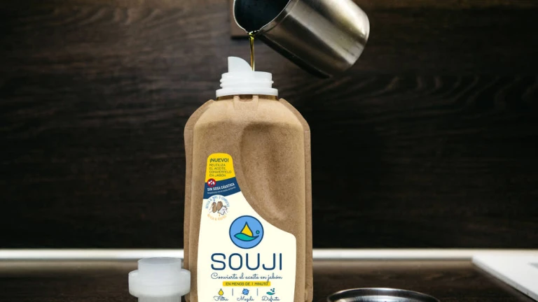 Para sofisticar esta elaboración y, además, aportar una propuesta respetuosa con el entorno, el ingeniero medioambiental, Sergio Fernández y la experta en márketing, Catalina Trujillo, han creado Souji. Se trata de un líquido -mezcla de minerales y vegetales- que al entrar en contacto con aceite reciclado produce un jabón perfumado. Nos lo explica la propia emprendedora en esta conversación que hemos mantenido con ella.