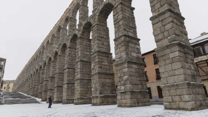 Nieve en las inmediaciones del Acueducto de Segovia, a 7 de enero de 2025, en Segovia