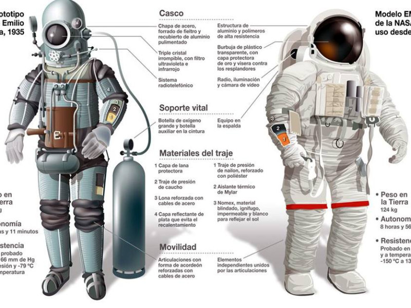 En 1935, cuando Herrera hizo las pruebas de resistencia, su traje resolvía todos los retos del momento: permitía total movilidad, protegía de la radiación solar, resistía los cambios de temperatura y las presiones extremas, y suministraba oxígeno gracias a una botella con autonomía para más de dos horas.