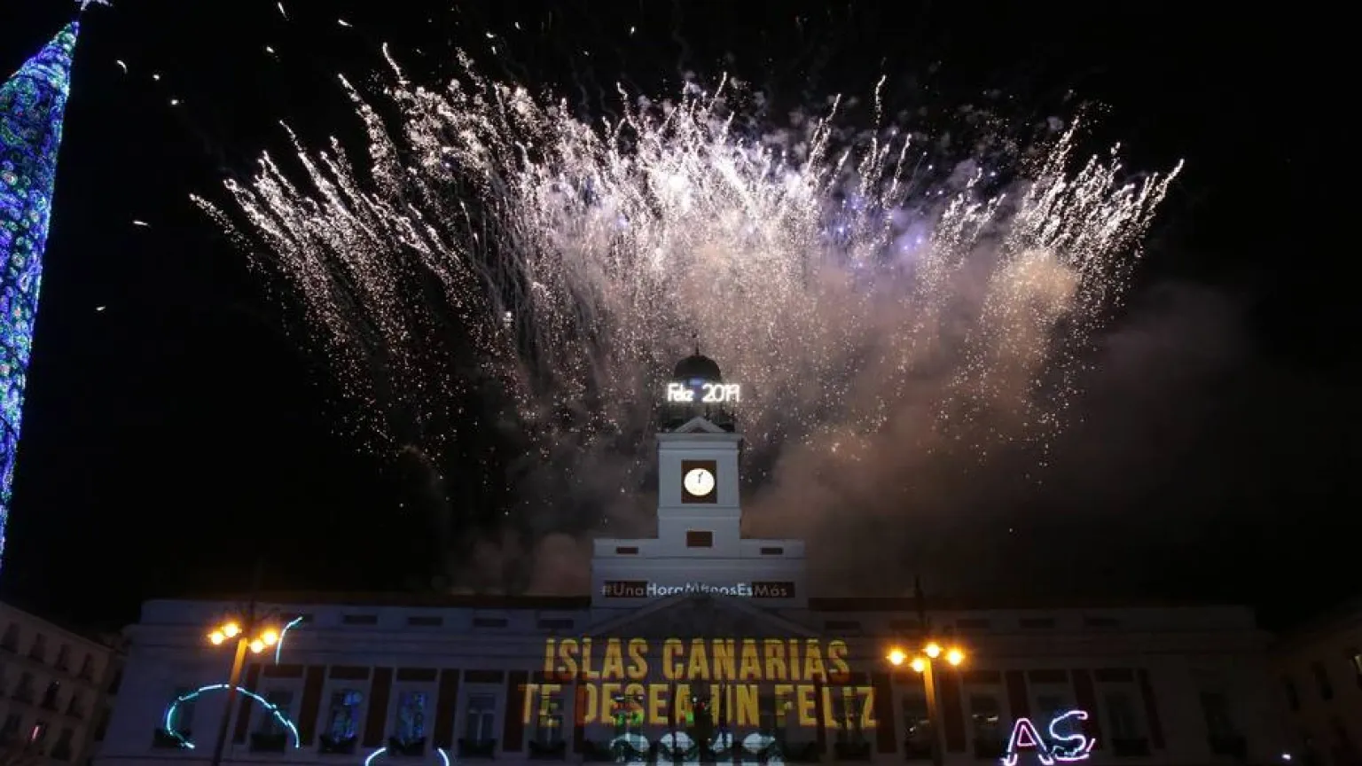 Miles de personas celebran el 'fin de año canario' en la Puerta del Sol
