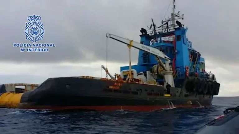 Así aborda la policía a un remolcador que cargaba 1.400 kilos de cocaína