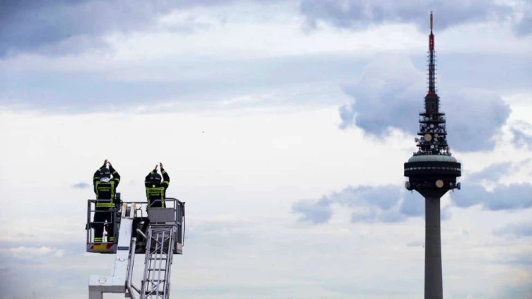 Una imagen vale más que mil palabras. Y una sola fotografía puede resumir a la perfección el sentir de una sociedad volcada en el dolor por la pandemia del coronavirus. La instantánea que captó el fotógrafo de ABC Ángel de Antonio, donde se ve a dos bomberos aplaudiendo subidos a una grúa y con el mítico pirulí de fondo, se ha convertido ya en una fotografía para la historia. Varios dirigentes políticos la han compartido en estas últimas semanas y muchas personas han contactado con el fotógrafo para poder usarla como dedicatoria a ese ser querido que se ha ido por culpa del virus.