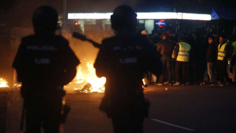 Los taxistas queman contenedores en Fitur