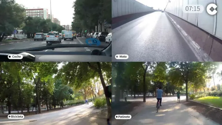 Hemos hecho un recorrido entre el Hospital Gregorio Marañón y la Iglesia de los Jerónimos de Madrid en un patinete eléctrico de Lime, en una bicicleta de BiciMAD, en un coche de Emov y en una moto de eCooltra de forma simultánea. Comparamos estos cuatro servicios haciendo un mismo trayecto simultáneamente en Madrid