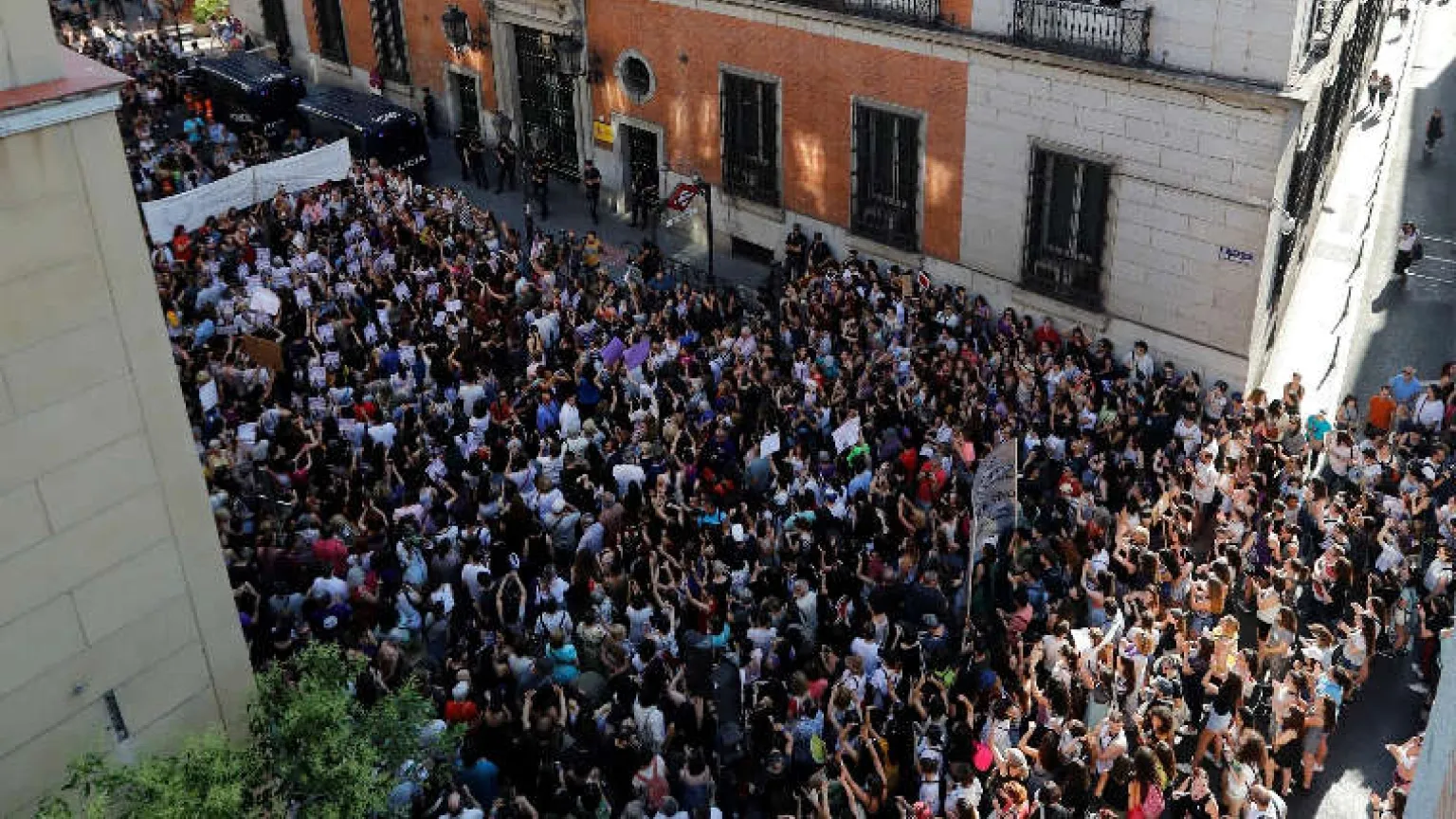 Protestas en las puertas del Ministerio de Justicia en Madrid tras la salida de prisión de La Manada.