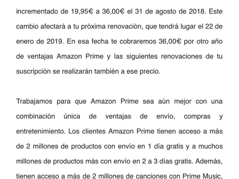 Finalmente Amazon ha decidido subir el precio de la subscripción Prime en España. Algo que era un rumor desde hace varios meses se ha convertido en una realidad, si quieres disponer de todas las ventajas de Amazon Prime tendrás que pagar 36 euros al año. Esta medida entra ya hoy en vigor, los que quieran convertirse en nuevos clientes de Amazon Prime tendrán que pagar ya este nuevo precio. Pero si eres ya cliente y tienes que renovar la suscripción a este servicio, antes del 2 de octubre, se mantendrá el precio anterior, 19,95 euros. Así lo ha comunicado la empresa a sus clientes a través de un email.