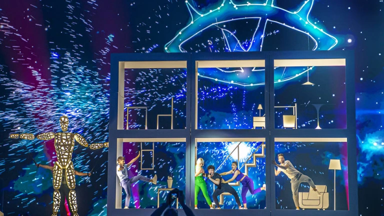 Para ello, TVE presenta una de las escenografías más trabajadas de esta edición, trufada de simbolismo y energía. Una estructura de hierro y aluminio con luces LED iluminada interiormente abrirá la actuación con Miki y sus bailarines ocupando cada una de las habitaciones. Miki despertará a todos ellos del letargo de la rutina. Aunque la figura más protagonista - y también controvertida - del show será ‘la marioneta’ Paco, un robot de tres metros de altura que representa la sociedad que nos domina y nos encierra en nuestro propio mundo. Sin embargo, tanto como Miki como sus bailarines se liberarán de esa opresión, vencerán a la marioneta y acabarán bailando junto al resto de los 7.500 espectadores que se darán cita este sábado en el pabellón 2 de la Expo Tel Aviv (Israel). Un ejercicio visual, con fuerza y rebosante de alegría con el que la delegación española espera encandilar al público europeo. El optimismo entre el equipo de RTVE desplazado al festival es muy alto y hasta el propio Miki ha admitido en las últimas horas que confía en quedar entre los diez primeros clasificados.
