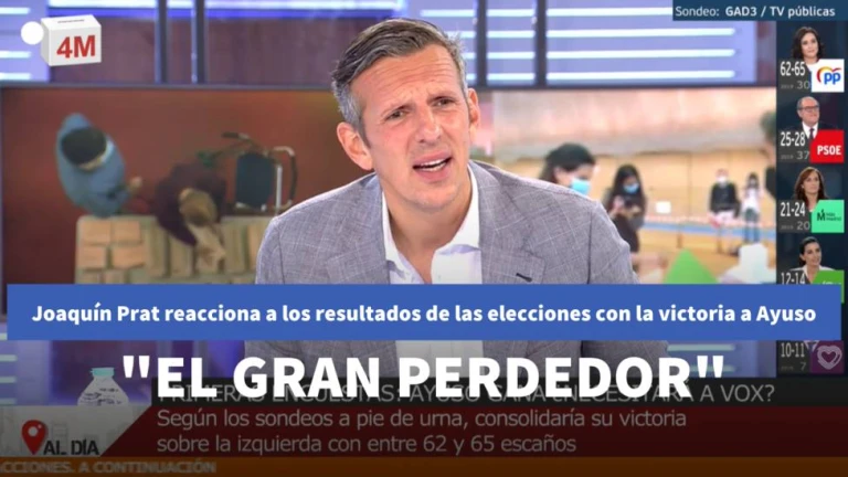 Por otro lado, PSOE , Unidas Podemos y Más Madrid no suman los escaños suficientes para poder gobernar. Además, parecía claro que Ciudadanos desaparecería de la Asamblea. Dado el revuelo causado por los resultados que se iban dando, Joaquín Prat no dudó en manifestar su opinión.