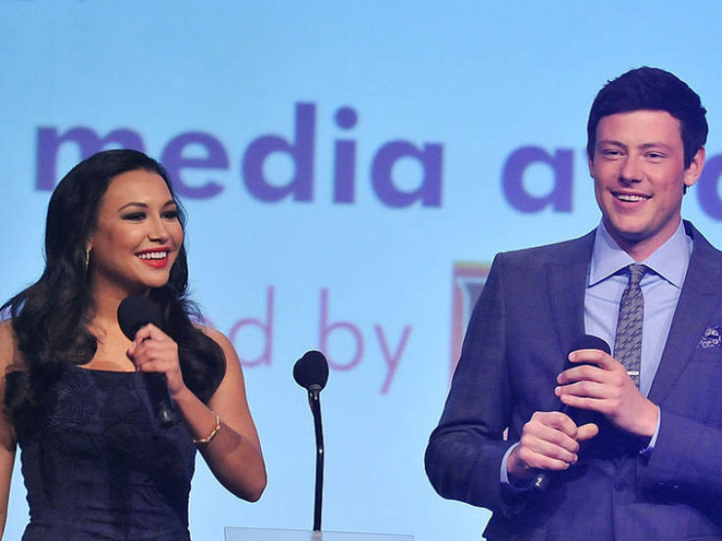 Naya Rivera y Cory Monteith durante un acto en 2012