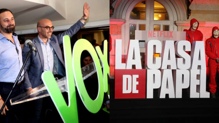 En uno de los capítulos, la actualidad política se ha colado en esta ficción. En el sexto capítulo, más concretamente en el minuto 14, se ha descubierto que uno de los hombres lleva una pulsera donde aparecía la frase “España Viva”, el lema con el que Vox se popularizó y se presentó a las pasadas elecciones. Tras este 'guiño', Vox ha querido sumergirse en el éxito de la serie española para hacerse eco de este detalle con sus votantes y afiliados: “La España Viva siempre dispuesta a echar una mano a los valientes”, han publicado en la cuenta oficial del partido en Twitter.