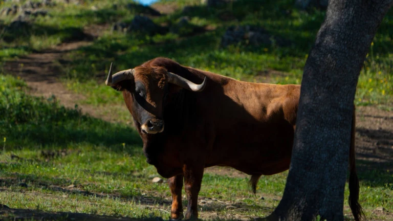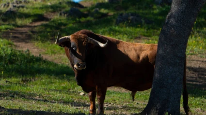 Varios toros de la ganadería onubense de Cuadri que pastan en la localidad de Trigueros