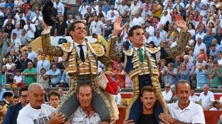 Fernando Adrián, que sustituía a Morante, cuaja una gran tarde y sale a hombros junto a El Juli, que corta dos orejas.