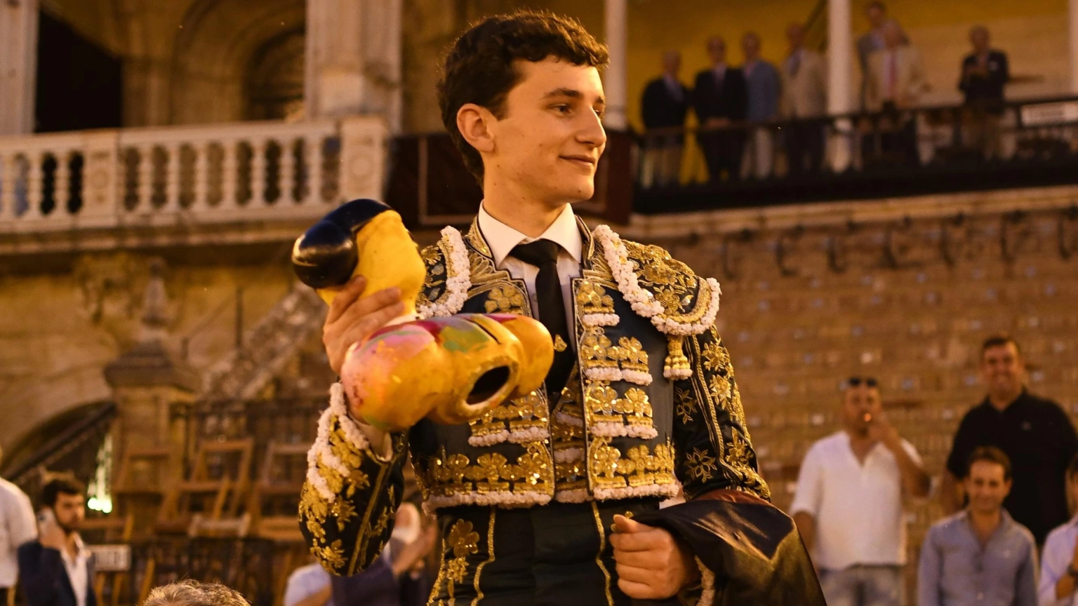 El quinto fue un novillo con calidad en su embestida al que el novillero de Morón toreó a la verónica con exquisito compás. Gustaron las chicuelinas con las que quitó para prologar, después, una lidia basada en el toreo diestro, de mano baja, compas abierto, continuos cambios de mano, todo muy hilvanado y rematado con notables pases de pecho. Y ente los altos y bajos de una faena en zigzag no faltaron perlas de buen gusto en los detalles. Unas manoletinas finales dieron paso a una estocada atravesada que necesitó de descabello. Tras leve petición dio la vuelta al ruedo.