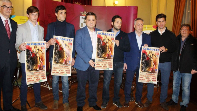 La casualidad quiso que se hiciesen públicos en el mismo día los carteles de los dos festejos más importantes de la temporada en la capital manchega junto con los habituales de la Feria de septiembre. Así, el alcalde de Albacete, Manuel Serrano, junto al concejal de Asuntos Taurinos, Alberto Reina, y los matadores de toros Rubén Pinar y Paco Ureña, además del alumno de la Escuela, José Fernando Molina, fueron los encargados de dar a conocer el cartel oficial del festival a beneficio de la institución Sagrado Corazón de Jesús que se celebrará el próximo domingo 13 de junio, poniéndose las entradas a la venta al público a partir del 7 de mayo.