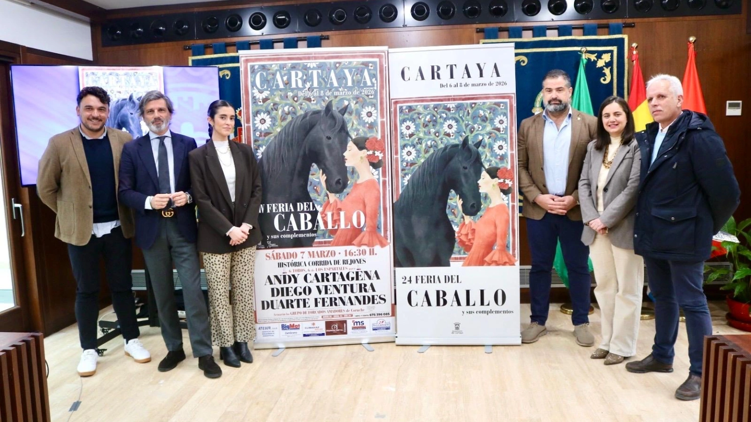 La Diputación Provincial de Huelva ha sido el escenario para la presentación del histórico cartel de rejoneo que se celebrará el próximo 7 de marzo a las 16:30 horas. El evento se enmarca en la 24ª edición de la Feria del Caballo y sus complementos de Cartaya, consolidando a la localidad como un referente en el mundo taurino.