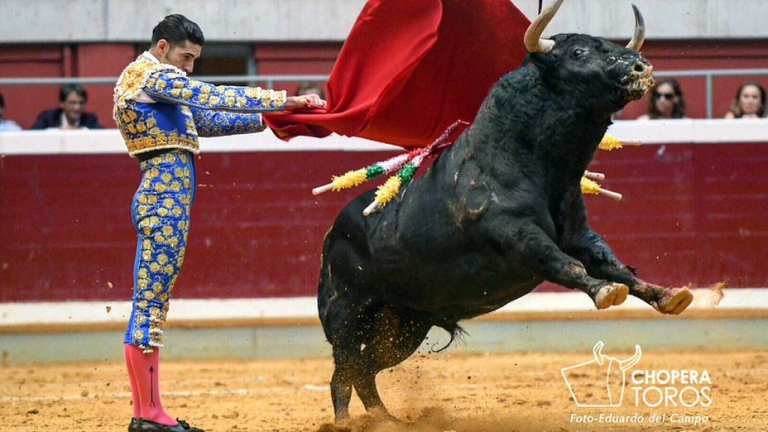 Inicio a pies juntos y primeras tandas a derechas con desmayo, los hombros caídos, mentón hundido en el pecho y torería en los embroques. Pero los tendidos todavía no acababan de despegar, aunque hubo un conato tras una tanda sublime al natural.