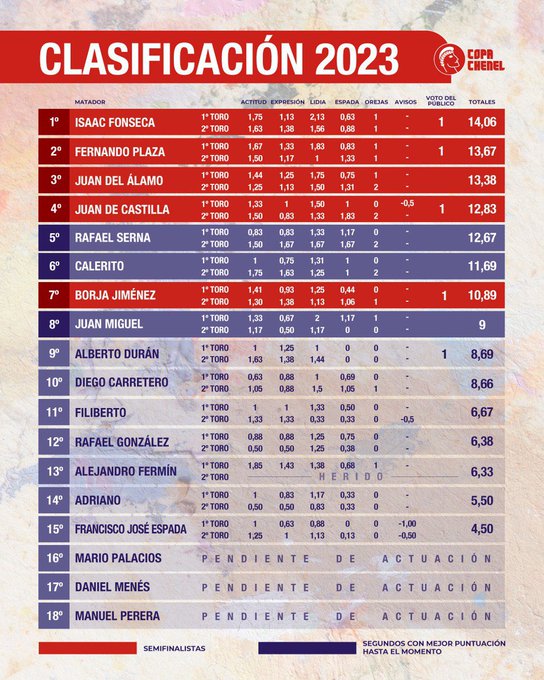 Ya en semifinales están Juan del Álamo, Isaac Fonseca, Fernando Plaza, Juan de Castilla y Rafael Serna, y ha sido este miércoles, en la “Encerrona de Carmelo López”, cuando se han dado a conocer los nombres de Borja Jiménez y Calerito.