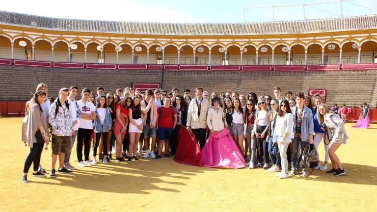 Desde las diez de la mañana hasta las dos de la tarde han pasado por la Plaza de Toros de Sevilla cinco colegios de enseñanza primaria, cuatro centros de educación especial y cinco facultades, además de asociaciones de jóvenes aficionados de Sevilla y un nutrido grupo de estudiantes franceses procedentes de la ciudad de Cannes. En total, cerca de mil alumnos que han tenido contacto por primera vez con la fiesta de los toros en este escenario único.