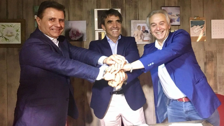 Paulo Carvalho, Victorino Martín y André Viard durante la constitución del Consejo Internacional de la Tauromaquia