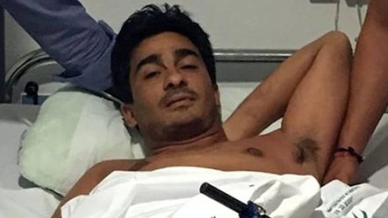 El subalterno José Manuel Soto durante su estancia en el hospital tras el percance que le hizo perder la pierna. ARCHIVO