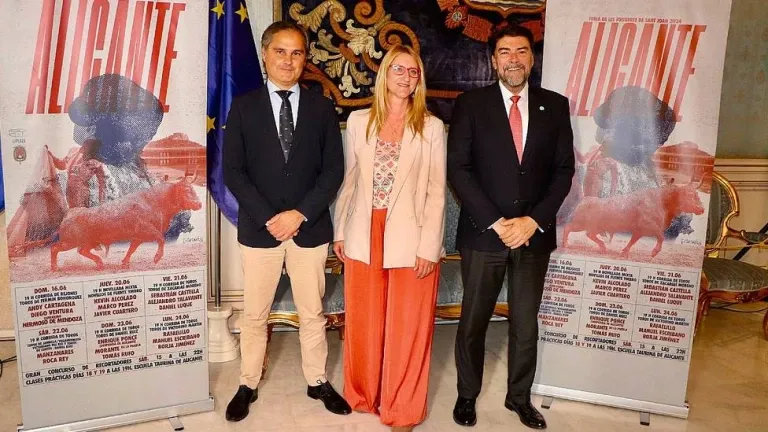 El Salón Azul del Excelentísimo Ayuntamiento de Alicante ha sido el marco elegido esta mañana para la presentación oficial de la Feria Taurina de Hogueras 2024. El acto, presididlo por el alcalde de la ciudad, Luis Barcala, contó también con la presencia de la concejala de la Plaza de Toros, Mari Carmen de España, e integrantes de la Corporación Municipal, así como Nacho Lloret, responsable de la empresa Eventos Mare Nostrum.