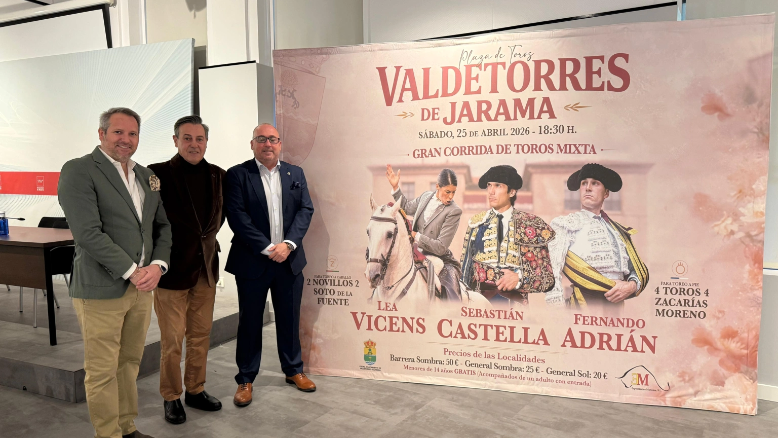 El festejo contará con la presencia de la rejoneadora Lea Vicens y de los diestros Sebastián Castella y Fernando Adrián. Se lidiarán toros de Zacarías Moreno para la lidia a pie y de Soto de la Fuente para el toreo a caballo, en una jornada que sirve para levantar el telón de una fecha ya consolidada cada primavera en la Comunidad de Madrid.